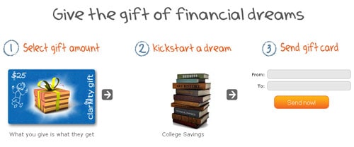 So the website is all about things I find very important as well, family and finances! Signing Up For ClariitySigning up for Clariity was extremely simple, and is free of charge. The site makes their money through advertising and premium memberships, but most people can get the most out of the free service. To sign up you just go to their homepage, click on “sign up” and then it will ask you for some extremely basic information including email, password and zip code. (Later on you can enter more information to further personalize the service, things like age, gender, marriage status, kids and so forth.) Once you sign up you’ll receive an email confirming that your account has been created, and you’re set to go! What Does Clariity Do?Clariity is essentially a clearing house for family financial issues, and an online family financial planning site. Anything a family may need to do in their financial life, Clariity wants you to be able to do through them. Opening a 529 education savings account, creating a will, setting home purchase savings goals and more. They can also request others to give to their family savings goals, and give Clariity gift cards to others to help them reach their goals. The site has only recently launched, but currently there are a few main things you can do at their site. Give Meaningful Gifts Via Clariity Gift CardsOne of the main things you can now do through Clariity is to give and receive financial gifts to go towards certain savings goals - through Clariity gift cards. So say say you know someone who just had a baby. You can give them the gift of a Clariity gift card to go towards the child’s college education. Or you know someone is saving for a house and you want to pitch in. Just give them a Clariity gift card which can be used towards their savings goal. You can also give just a generic Clariity gift card to be used for the goal of the recipients choice. Once a gift card is received, t herecipient can then link up their existing savings account or education savings account on Clariity, and the money will go right into the account. If they don’t have one they can sign up for one through Clariity. Setting Goals And Planning AheadCurrently when you sign up for Clariity you can do a number of things including setting goals for a home purchase, vacation, wedding, college savings, car purchase or other miscellaneous savings goal. You can also put in place the first steps of estate planning, including creating a will. To do all that you’ll go to their easy to use “goals map” shown below. Once on the map, there are a variety of things you can do. Setting Up A 529 College Savings PlanChoosing a 529 college savings plan on Clariity is as easy as 1, 2, 3. When you start the process you just select how long you have to save, and how much you want to save every month. It will then take you to a page with 529 ESA accounts available for your state. Of course residents aren’t limited to investing in their own State’s plan. Another state may offer a plan that performs better and has lower fees. If there is no tax break offered for in-state investors you can also choose from plans from other states and sort through them by total expense ratio, enrollment fees, user ratings, plan name. When I checked my state plan – in Minnesota, there were some advantages to that plan for Minnesota residents, so it’s a good idea to check. Once you figure out which one meets your needs, you just complete an online questionnaire, Clariity will mail you a completed and verified application, which you can then sign, enclose a check and send in to your new 529 institution to open your account. They will then open your account and confirm it with you. Savings GoalsBeyond college savings, you can also set up a variety of other savings goals within Clariity. Anything from a home or auto purchase to a vacation or a wedding savings goal. Each goal calculator will have you select how much you want to save, how long you have to save, and how much you want to save every month. Then it will give you some options of where to save your money. You can either link an existing account, or they’ll also give you a list of savings account options as well. Estate PlanningOne thing that you can do on Clariity that I’ve been putting off is creating a will. Doing the will is a simple step by step process, after which you can print your will, get it notarized – and file it with your county records clerk. The site will ask you for your testators (person who is making the will), your estate’s executors, names and DOB for your children, guardians for any minors, bequests you’d like to make, property you’re leaving, additional powers and provisions (like cremation vs. burial, etc) and a section for a living will. It seems to be pretty thorough, and I think it should be fine for most simple situations. More complicated situations should probably still seek an attorney’s advice, and the site offers to set you up for a free consultation with an estate planning attorney at the end, in case you’re interested. ConclusionThe idea behind Clariity is to become a one stop shop for families trying to make sound financial decisions about education, wills, savings, and more – and to allow their friends and family to help contribute towards those goals. While the site has just re-launched, and the options on the site are still a work in progress, it definitely has some promise. Their tools for setting up a 529 education savings account, and for creating a will are easy and straight forward. The savings goals options will allow families to put together a plan. So for now I would go ahead and give the site a tentative thumbs up. Some things I’d like to see in the near future include better instructions on some of the pages and more options for helping families to plan out certain financial situations in their lives, beyond savings goals and wills. All in all, however, a solid launch with some