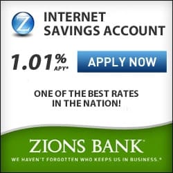 Zions Bank Review: High Yield Savings, Checking, Money Market Accounts Posted: 02 Mar 2011 07:37 AM PST Because I’m a personal finance blogger I try to stay on top of what banks are out there, what the best bank rates are on high yield savings accounts, and what banks tend to have the best customer service and online tools. I’ve written about quite a few banks here, including the one we currently have our cash stashed at, Ally Bank (Although we do have an account with ING Direct as well). Up until a couple of months ago one bank that I had never heard of, however, was Zions Bank. At first I thought that maybe they were a newer bank trying to capitalize on the slow savings market, but then after doing some research I found that they’ve been around since 1873. So they’re definitely not a flash in the pan. After doing a little more research I found that they’ve got a decent slate of offerings, so I thought that I’d do a review of them here. Zions Bank History
